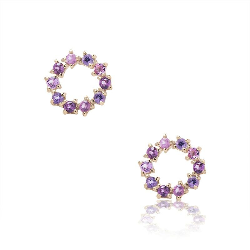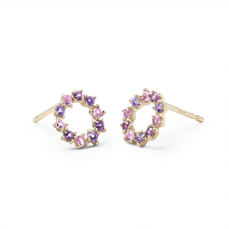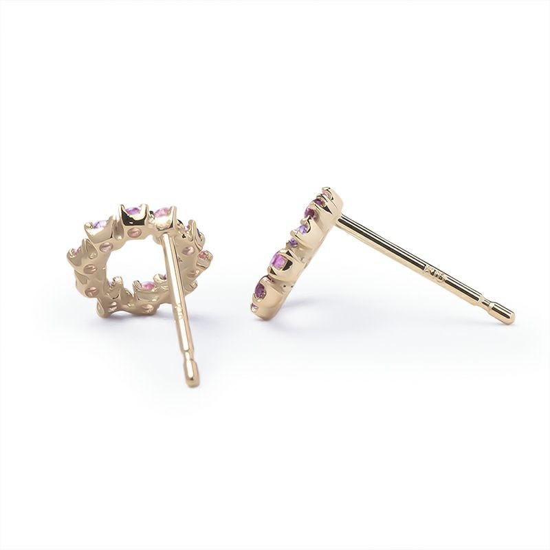 3石の宝石を散りばめた、ブーケのようなデザインが華やかなイエローゴールドピアス。
