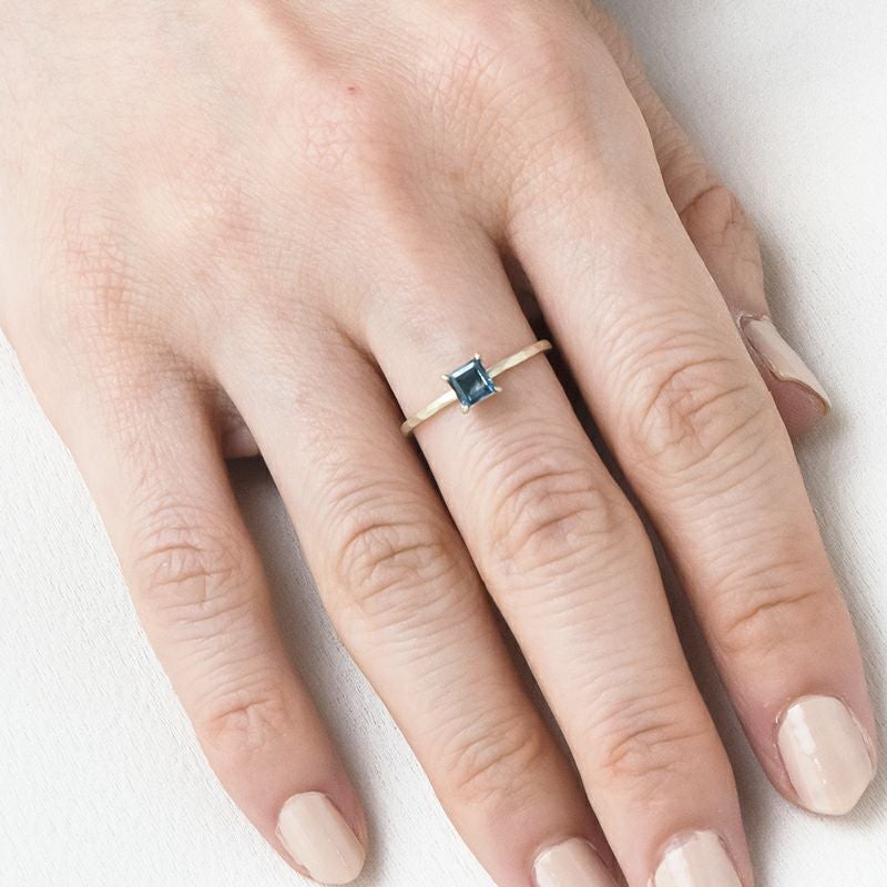 指元にそっと寄り添う、愛らしいスクエアカットリング。