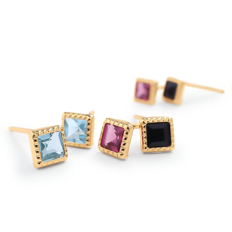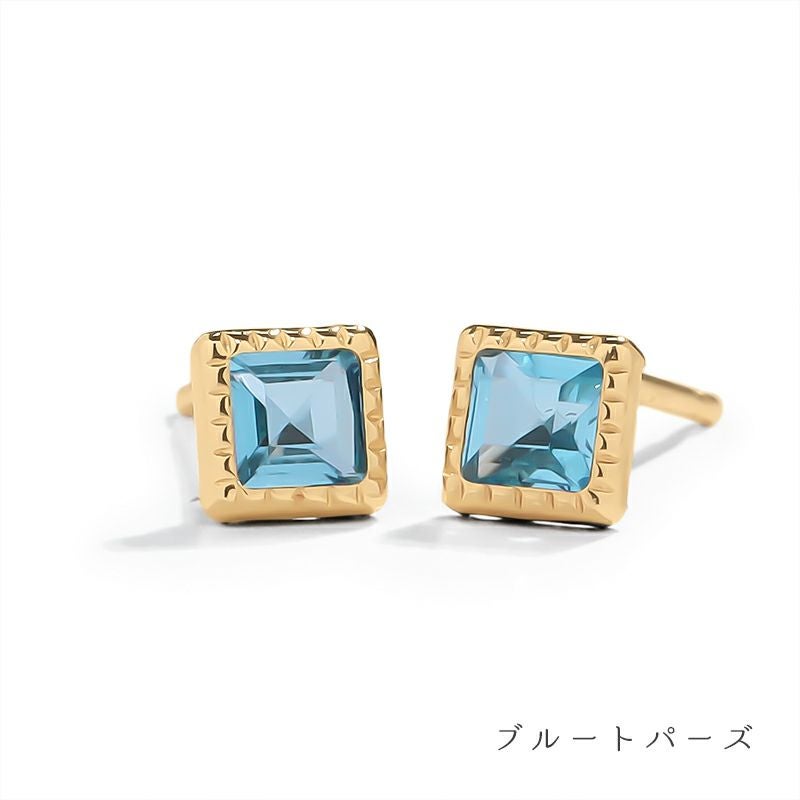 K10スクエアカラーストーンピアス